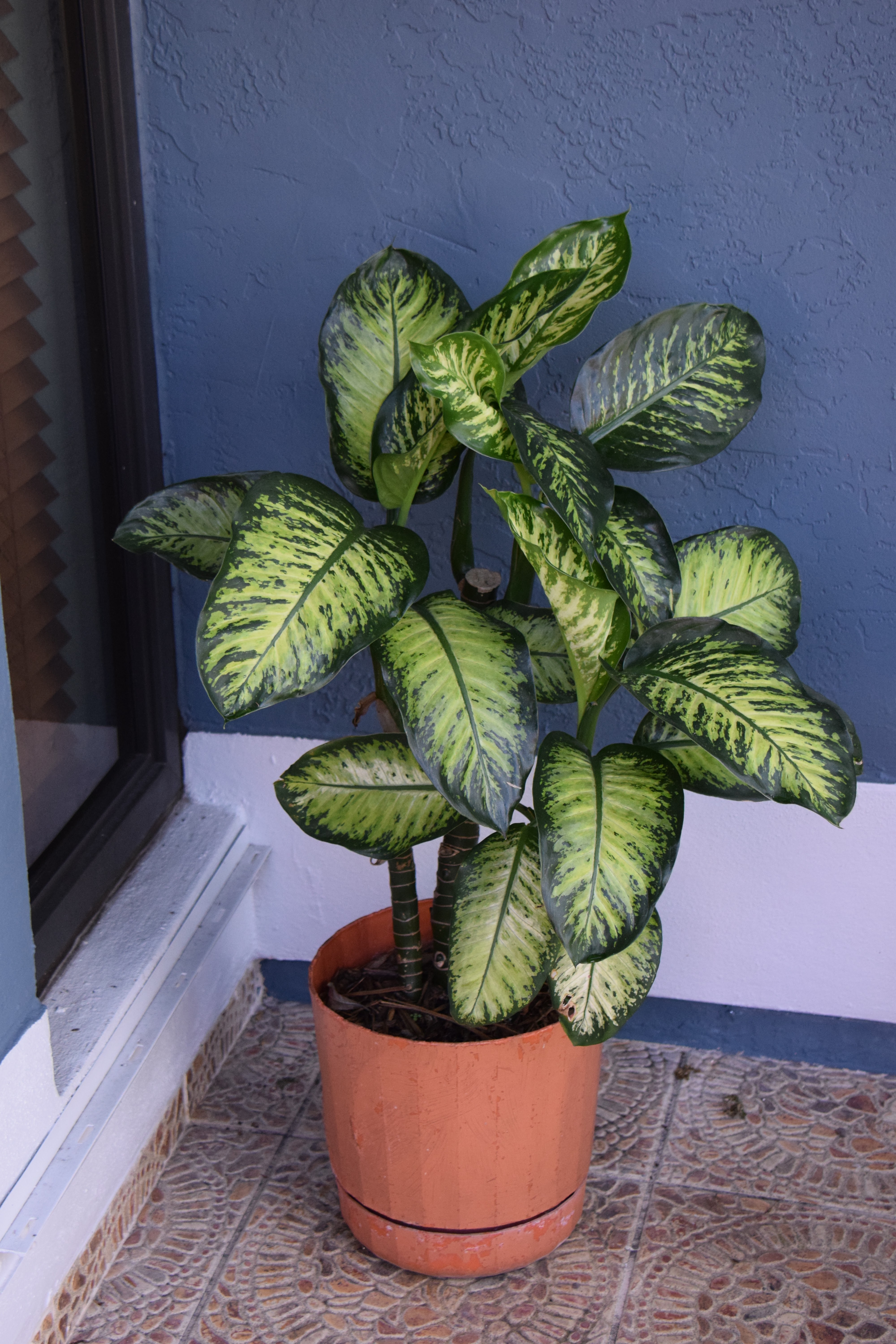 This was my mother's favorite plant, she always called it "Malanga". When she passed away two years ago I inherited twelve of this potted plants. I could not leave them at the house when it was sold, so I took them all home. I kept some and gave away the others to family and friends. It turns out that the real name is Dieffenbachia plants and is also known as "Dumb Cane and "Mother-in-law's tongue. This plant is also highly toxic.