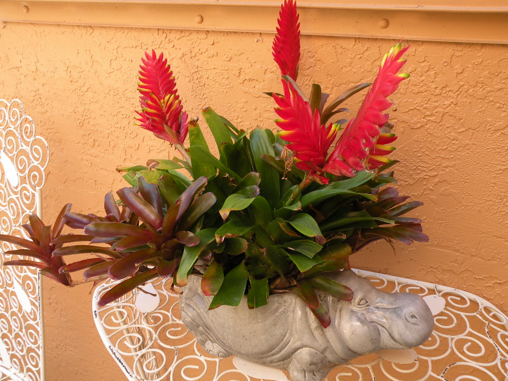 I also replanted all the bromeliads around the water fountain There were many Monarch butterflies flying around today. Some were newborn, like this one